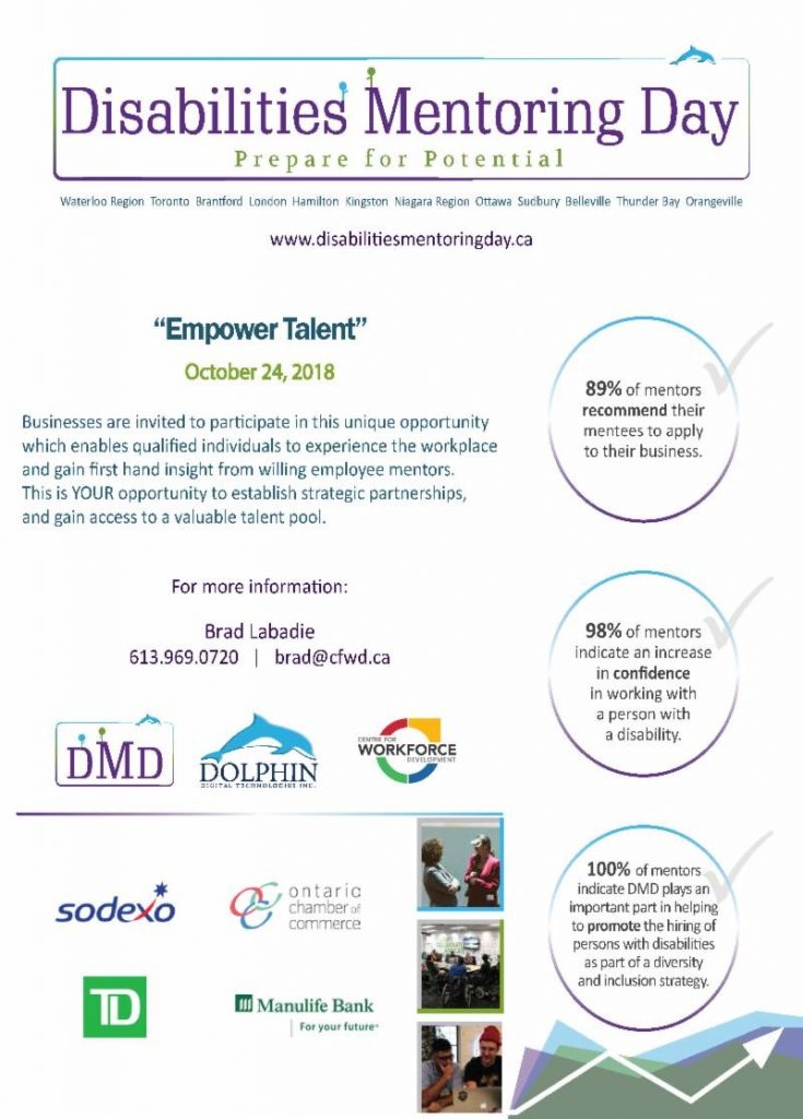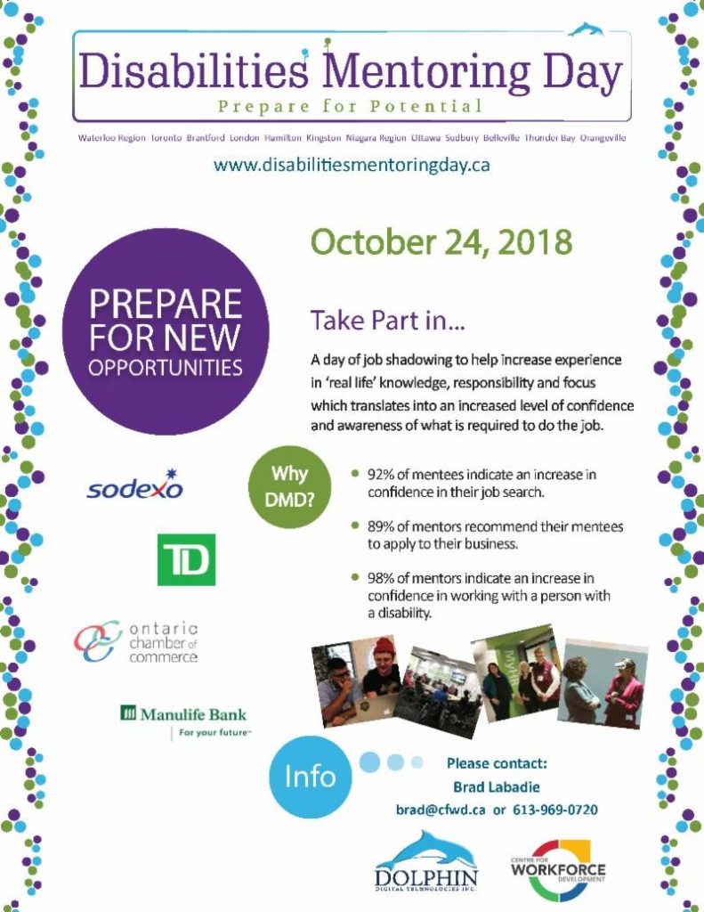 Since 2011, Dolphin Disabilities Mentoring Day (DMD) has matched aspiring and motivated people with disabilities with our strong community partners to provide a unique opportunity to gain insight from practicing professionals around job requirements, jobs duties and tasks where the person’s skill sets are a best fit.