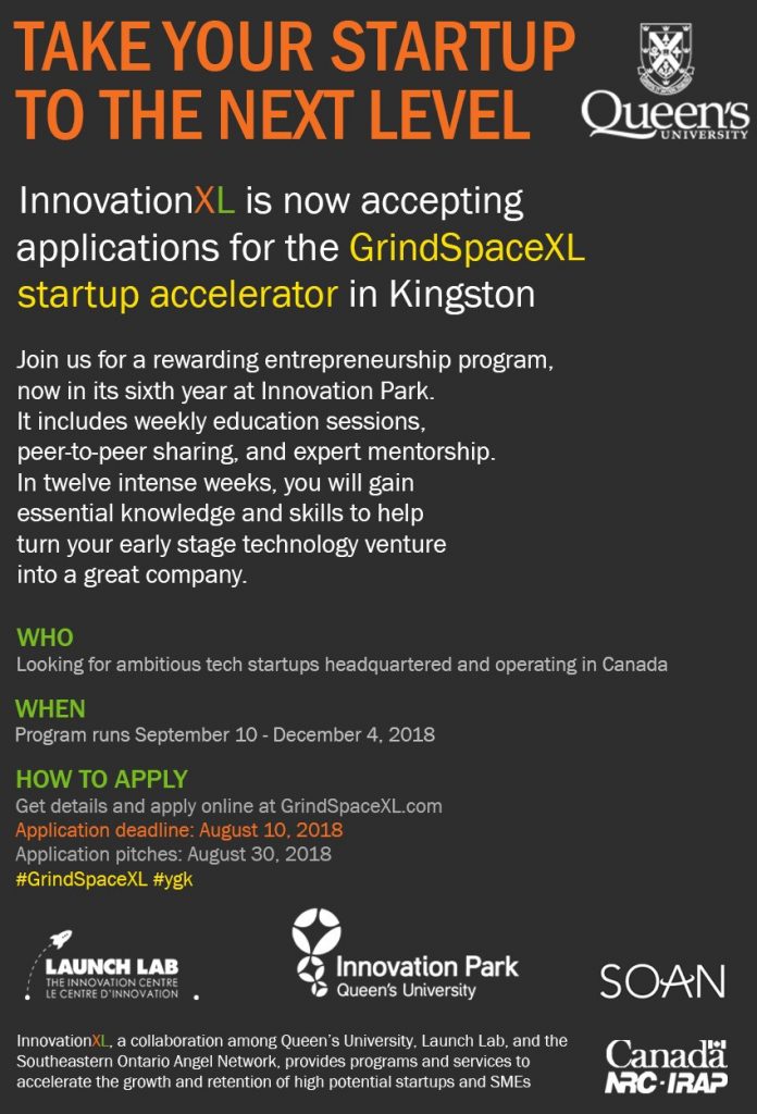 Time is running out to apply for this year’s cohort of GrindSpaceXL — the cutoff is August 10 2018!
