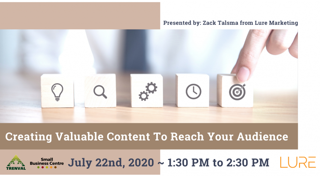 Registration: https://www.eventbrite.ca/e/creating-valuable-content-to-reach-your-audience-tickets-110124356916