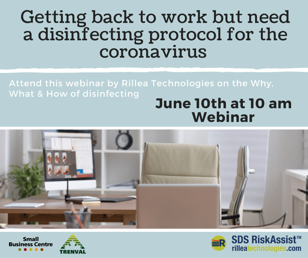 Small Business Centre Webinar: Disinfecting Protocol in the Workplace Posted on June 8, 2020June 8, 2020 by cedit FULL DETAILS AND REGISTRATION