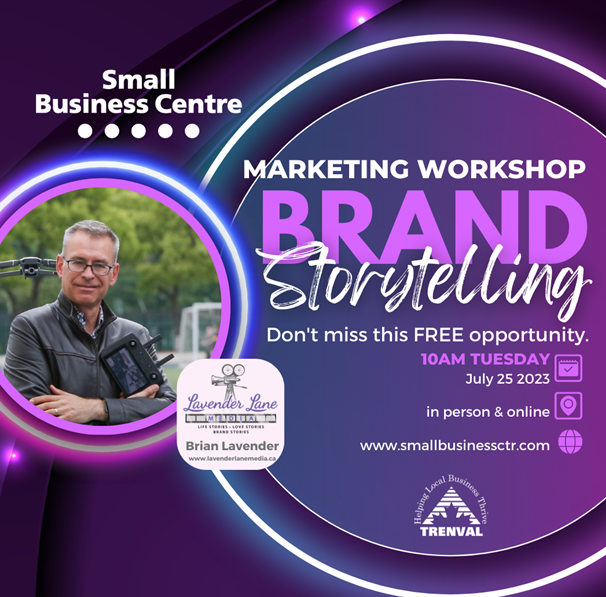 Join the Small Business Centre and Brian Lavender of Lavender Lane Media for this interactive Marketing Workshop. Whether you’re at the wheel of a new startup or looking to drive an established business to the next level, your marketing will benefit from the power of storytelling to boost the success of your brand. Shifting the way you communicate your brand’s story can make it more memorable and more relatable which opens up a path to stronger relationships and better sales.