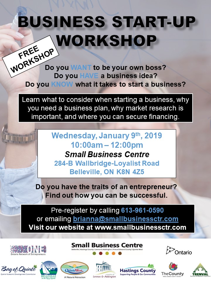 Small Businses Centre: Business Start-Up Workshop: City of Belleville Posted on November 9, 2018 by cedit