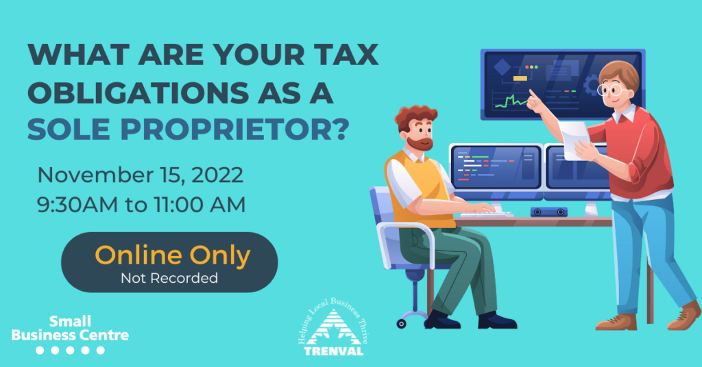 Registration: https://www.eventbrite.ca/e/what-are-your-tax-obligations-as-a-sole-proprietor-tickets-449562071257